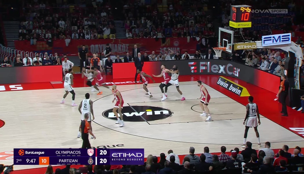 Ολυμπιακός - Παρτιζάν: Ο Φρανκ Νιλικίνα έδειξε τα αθλητικά του προσόντα και την προσήλωσή του στην άμυνα, κόβοντας εντυπωσιακά τον Στέρλινγκ Μπράουν σε σουτ τριών πόντων.