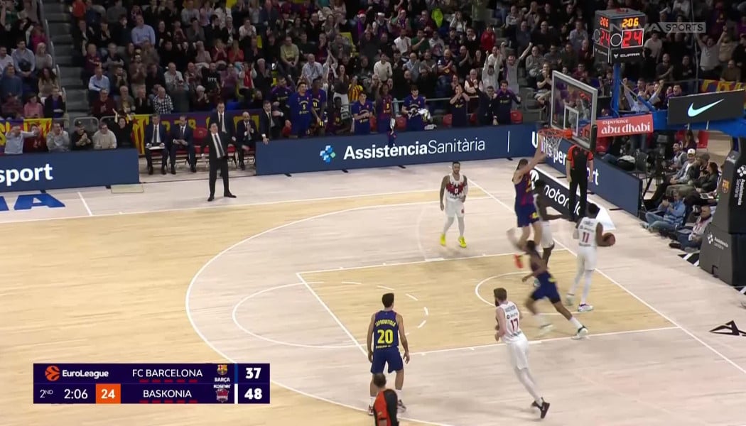 Σε έναν συγκλονιστικό σε εξέλιξη ισπανικό «εμφύλιο», που κρίθηκε στις τρεις παρατάσεις και στον οποίο σημειώθηκε ρεκόρ παραγωγικότητας σε ένα ματς Euroleague (258 πόντοι), η Μπαρτσελόνα υπερασπίστηκε την έδρα της και πανηγύρισε την πέμπτη διαδοχική νίκη της, πιάνοντας με ρεκόρ 12-5 τη Χαποέλ Τελ Αβίβ στην κορυφή της βαθμολογίας. Οι Καταλανοί επικράτησαν με 134-124 της Μπασκόνια, για τη 17η αγωνιστική, με τους Βάσκους να υποχωρούν 6-11.