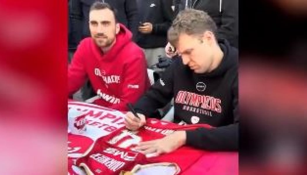 Ο Σάσα Βεζένκοφ και ο Νίκολα Μιλουτίνοφ έβγαλαν πολλές φωτογραφίες με τους φίλους του Ολυμπιακού και ο Σέρβος σέντερ θυμήθηκε πως ήταν και αυτός σε μικρή ηλικία.