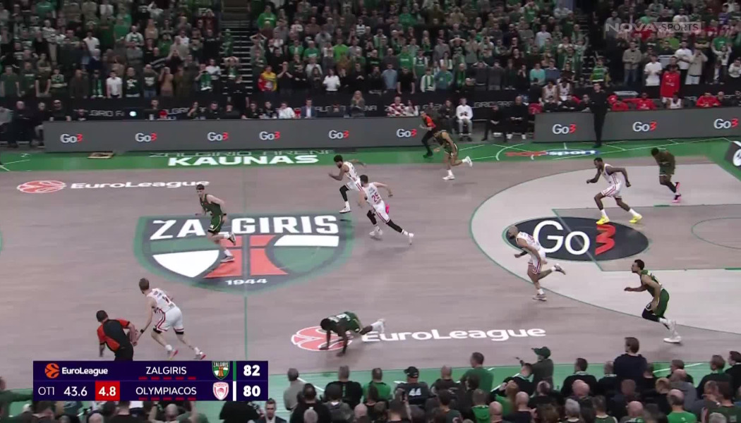 "Χαρακίρι" του Ολυμπιακού στο Κάουνας μιας και παρά το γεγονός ότι μπήκε στο φινάλε του αγώνα με διαφορά 9 πόντων, έπαθε «μπλακ άουτ» στο τέλος της κανονικής διάρκειας (73-73) και τελικά γνώρισε την ήττα από τη Ζαλγκίρις στην δεύτερη παράταση με 99-94.