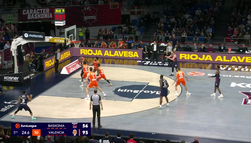 Η Βαλένθια πέτυχε 35 πόντους στο πρώτο δεκάλεπτο, με τον Πέδρο Μαρτίνεθ να χρησιμοποιεί δέκα παίκτες και να σκοράρουν οι εννέα! Με άλλα λόγια, δεν είχε από ποιον να... πρωτοφυλαχθεί η Μπασκόνια που βγήκε σε χρόνο-ρεκόρ εκτός διεκδίκησης της νίκης. Το χάσμα μεγάλωσε ακόμα περισσότερο στη δεύτερη περίοδο (31-56 στο 17΄) και ήταν εμφανές πλέον ότι το ματς είχε κριθεί. Η διαφορά έφτασε στο +35 (38-75 στο 23΄) με τη Βαλένθια να έχει σχεδόν double score και «άγγιξε» το +40 (51-89 στο 28΄).