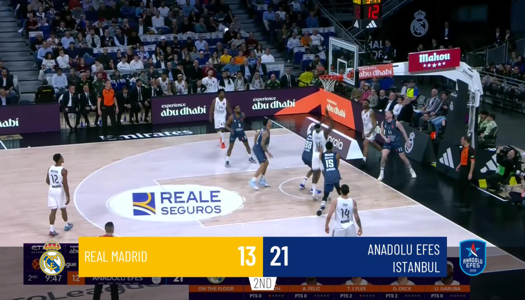 Η Αναντολού Εφές ξεκίνησε δυνατά με 0-12, αλλά η Ρεάλ αντέδρασε στη δεύτερη περίοδο, παίρνοντας προβάδισμα με 42-33, μετά από ένα εντυπωσιακό επιμέρους σκορ 31-12. Παρά τις προσπάθειες στην τρίτη περίοδο, οι φιλοξενούμενοι (ρεκόρ 10-24) δεν είχαν τις δυνάμεις για να ανατρέψουν την κατάσταση...