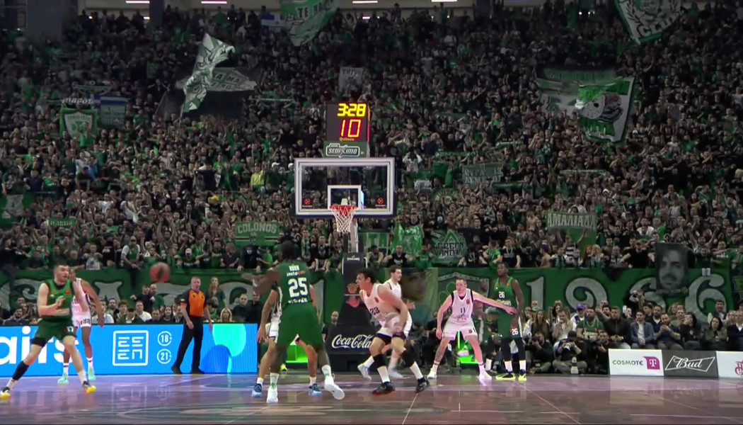Παναθηναϊκός: Μαγική φάση στο ΟΑΚΑ κατά τη διάρκεια του δεύτερου δεκαλέπτου στον αγώνα των Πρασίνων με την Εφές, με τον Νίκο Ρογκαβόπουλο να... πετάει και να καρφώνει εμφατικά στο αντίπαλο καλάθι.