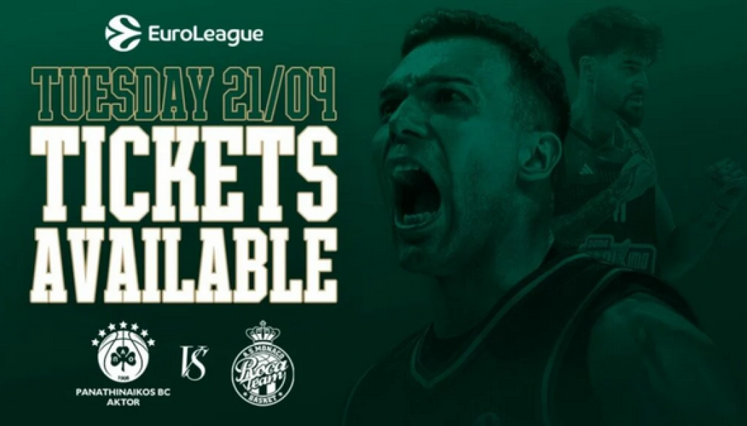Η ΚΑΕ Παναθηναϊκός AKTOR ανακοίνωσε την έναρξη διάθεσης των εισιτηρίων για την εντός έδρας αναμέτρηση με την AS Monaco, η οποία θα διεξαχθεί την Τρίτη 21 Απριλίου στις 21:00 για τα play-in της EuroLeague.