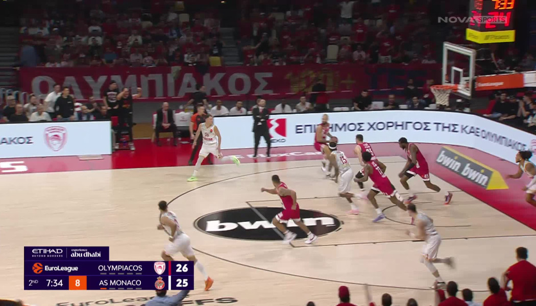 Εντυπωσιακή άμυνα από τον σέντερ του Ολυμπιακού, ο οποίος είχε τρεις τάπες από το πρώτο ημίχρονο στην αναμέτρηση με τη Μονακό