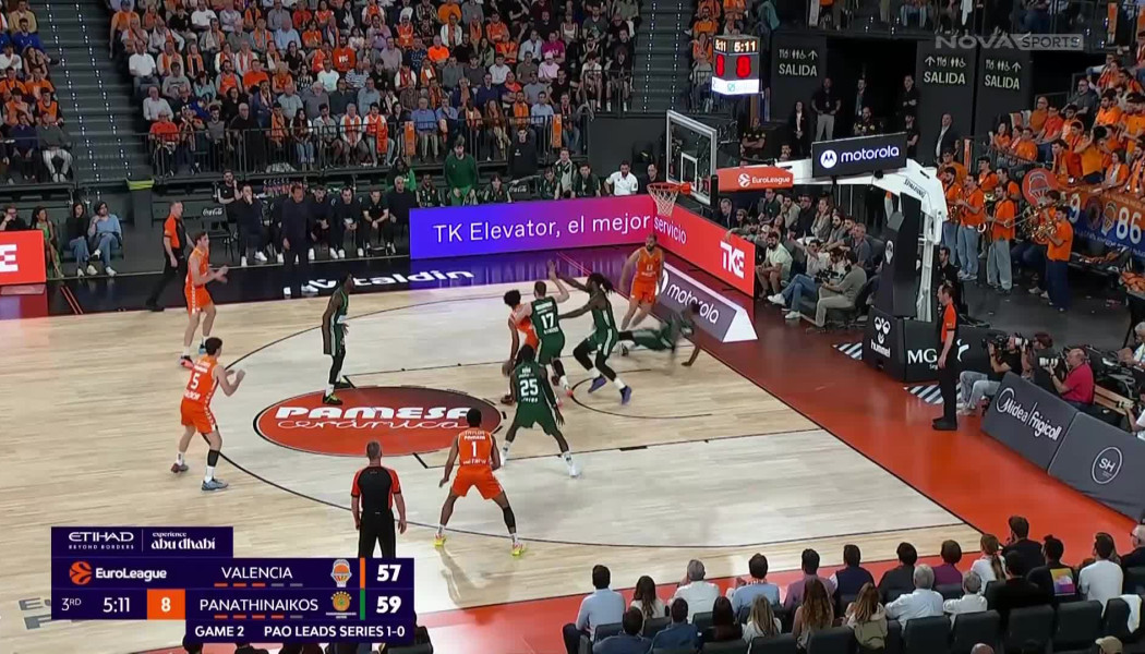 Ο Γάλλος σέντερ συνέχισε τις καλές του άμυνες και έκοψε τον άσο της Βαλένθια σε προσπάθειά του να σουτάρει.