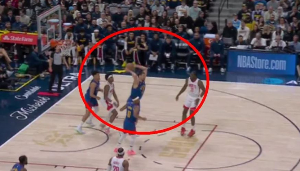 Ο σούπερ σταρ των Ντένβερ Νάγκετς έπιασε την μπάλα κάτω από το καλάθι της ομάδας του και με τα δύο χέρια έστειλε μια τέλεια ασίστ στον Κρίστιαν Μπράουν, ο οποίος έτρεξε και έκανε λέι απ.