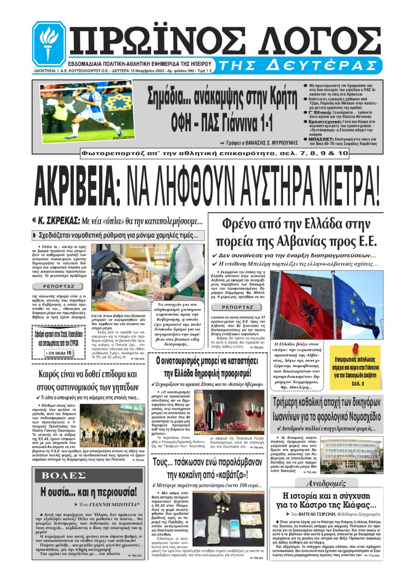ΠΡΩΙΝΟΣ ΛΟΓΟΣ ΙΩΑΝΝΙΝΩΝ