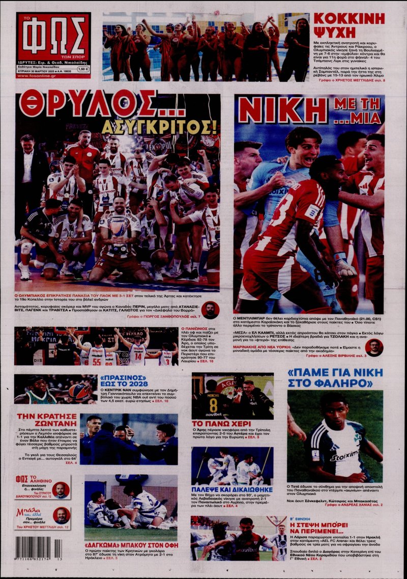 ΦΩΣ ΤΩΝ ΣΠΟΡ ΤΗΣ ΚΥΡΙΑΚΗΣ