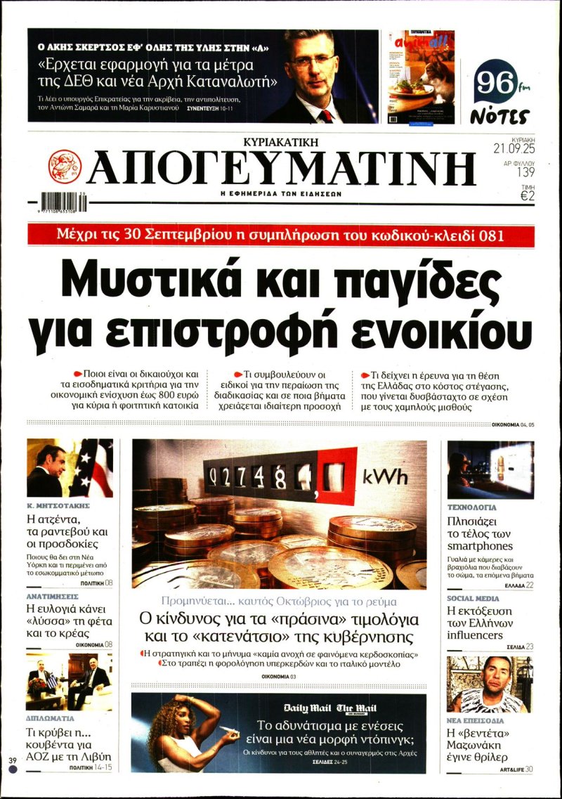 ΑΠΟΓΕΥΜΑΤΙΝΗ ΚΥΡΙΑΚΑΤΙΚΗ ΕΚΔΟΣΗ