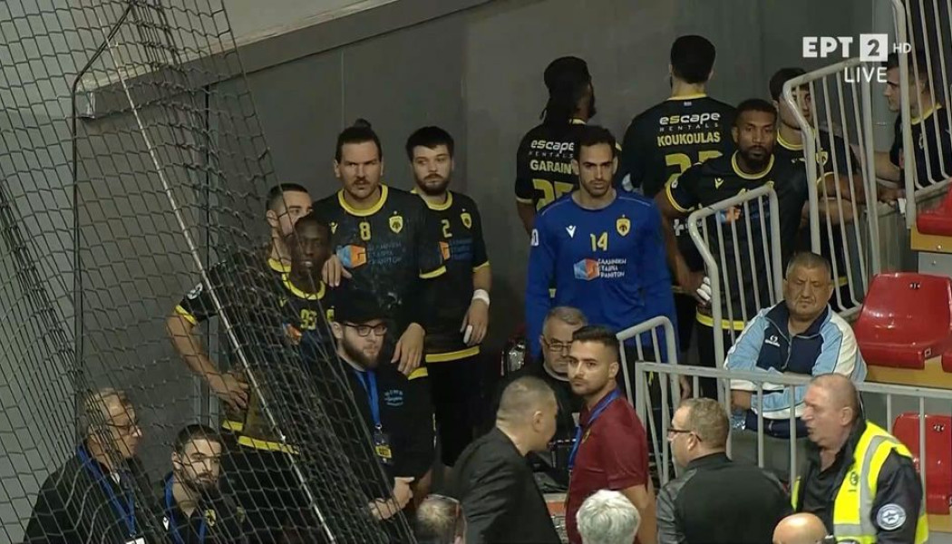 Ο Σταμάτης Παπασταμάτης, ο ηγέτης της ομάδας Χάντμπολ, ενημέρωσε την ομάδα στα αποδυτήρια ότι η απόφαση της διοίκησης είναι να μην κατέβει να αγωνιστεί, σεβόμενη την αδικία εις βάρος των φιλάθλων της που δεν τους επέτρεψαν να περάσουν τα σύνορα...