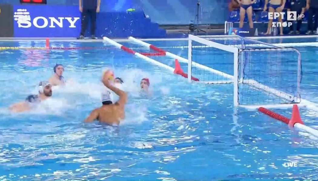 Η «γαλανόλευκη» προηγήθηκε 3-2 στα μισά της πρώτης περιόδου, με δύο γκολ του Αργυρόπουλου και ένα του Καλογερόπουλου, αλλά η άμυνά της από την αρχή δεν λειτουργούσε καθόλου καλά. Ετσι, όταν «στέρεψαν» οι επιθετικές λύσεις, η εθνική δέχθηκε ένα απίστευτο σερί 7-0 και βρέθηκε πίσω με διαφορά έξι τερμάτων (9-3), έχοντας χάσει στο διάστημα αυτό ένα πέναλτι με τον Παπαναστασίου και δύο επιθέσεις με παίκτη παραπάνω. Ο Νίκος Καστρινάκης έδωσε μία «ανάσα» στην ελληνική ομάδα, αλλά λίγο αργότερα αποβλήθηκε με αντικατάσταση και η Σερβία, η οποία είχε εξαιρετικά ποσοστά στον παίκτη παραπάνω, έφτασε στο +7 (11-4), δύο λεπτά πριν τη λήξη του ημιχρόνου.