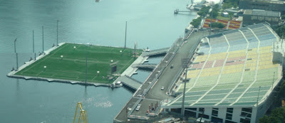 5. Σιγκαπούρη, Marina Bay: Κατασκευάστηκε εξ ολοκλήρου από χάλυβα, πάνω σε πλωτή εξέδρα. Έχει 390 μέτρα μήκος και 270 μέτρα πλάτος. Μπορεί να αντέξει συνολικό βάρος 9.000 ανθρώπων. Οι κερκίδες που βρίσκονται στην στεριά χωράνε 30.000 άτομα.