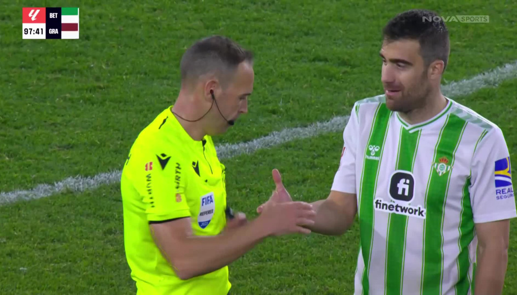 Ο Έλληνας στόπερ είχε απλώσει για αρκετά δευτερόλεπτα το χέρι του στον ρέφερι, αλλά εκείνος δεν τον έβλεπε με τον Σωκράτη Παπασταθόπουλο να περιμένει με ανυπομονησία τη χειραψία.