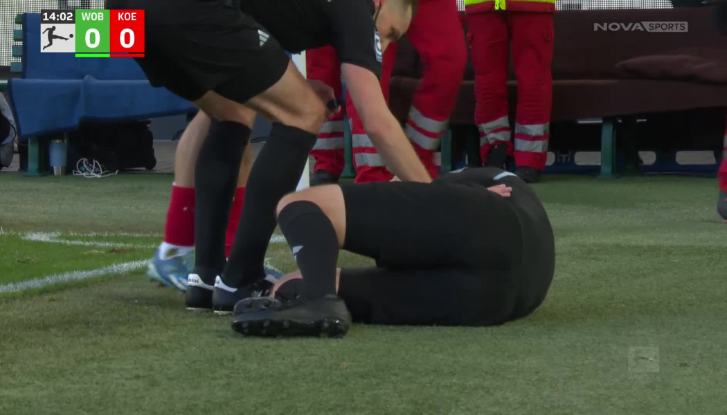 Μετά από μια δυνατή μπαλιά, ο ένας επόπτης στο Βόλφσμπουργκ-Κολωνία τραυματίστηκε και δεν μπόρεσε να συνεχίσει, με συνέπεια να αναζητηθεί αντικαταστάτης.