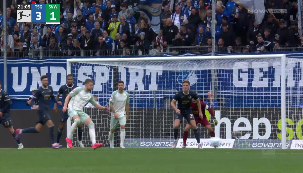 Η Χόφενχαϊμ προηγήθηκε με 3-0 στο 12’, αλλά η Βέρντερ Βρέμης παίζοντας με παίκτη περισσότερο έκανε ανατροπή της σεζόν στη Bundesliga.