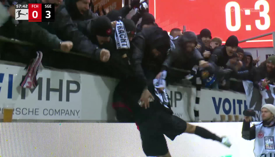 Ο Ομάρ Μαρμούς στο εκτός έδρας ματς της Άιντραχτ Φρανκφούρτης με την Χαϊντενχάιμ έκανε μία ασύλληπτη ποδιά στον αντίπαλό του και αφού πλάσαρε για το 3-0 στο 58′ πήγε και στην κερκίδα να πανηγυρίσει.