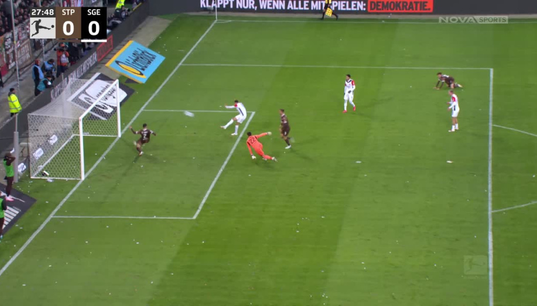 Ήταν ευκολότερο να το βάλει αλλά το έχασε ο παίκτης της Άιντραχτ Φρανκφούρτης σημαδεύοντας το δοκάρι σε κενή εστία.