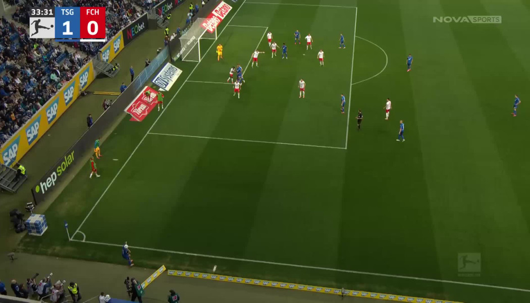 Η Χόφενχαϊμ έφερε ισοπαλία με 1-1 με την Χαϊντενχάιμ, αλλά πέτυχε ένα γκολ με την κεφαλιά του Ταμπάκοβιτς από εκτέλεση πλαγίου άουτ στο 34ο λεπτό.