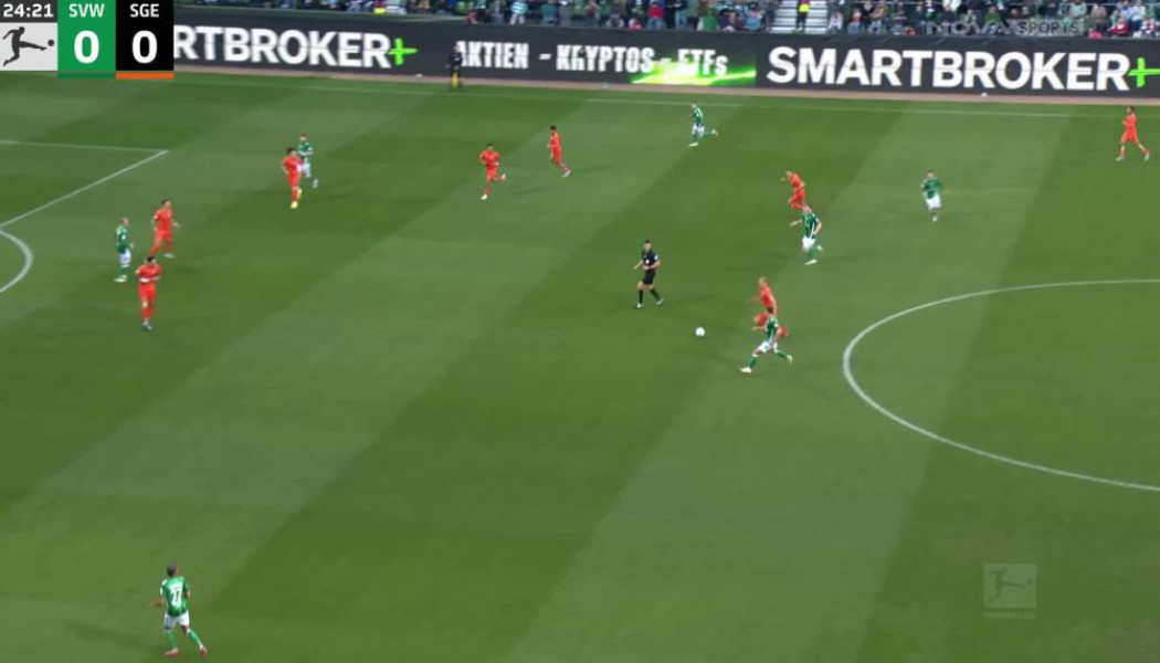 Αρνητικά κύλησε για την Άιντραχτ το σαββατιάτικο (5/4) παιχνίδι με τη Βέρντερ στη Βρέμη, χάνοντας με 2-0 για την 28η «στροφή» της Bundesliga.