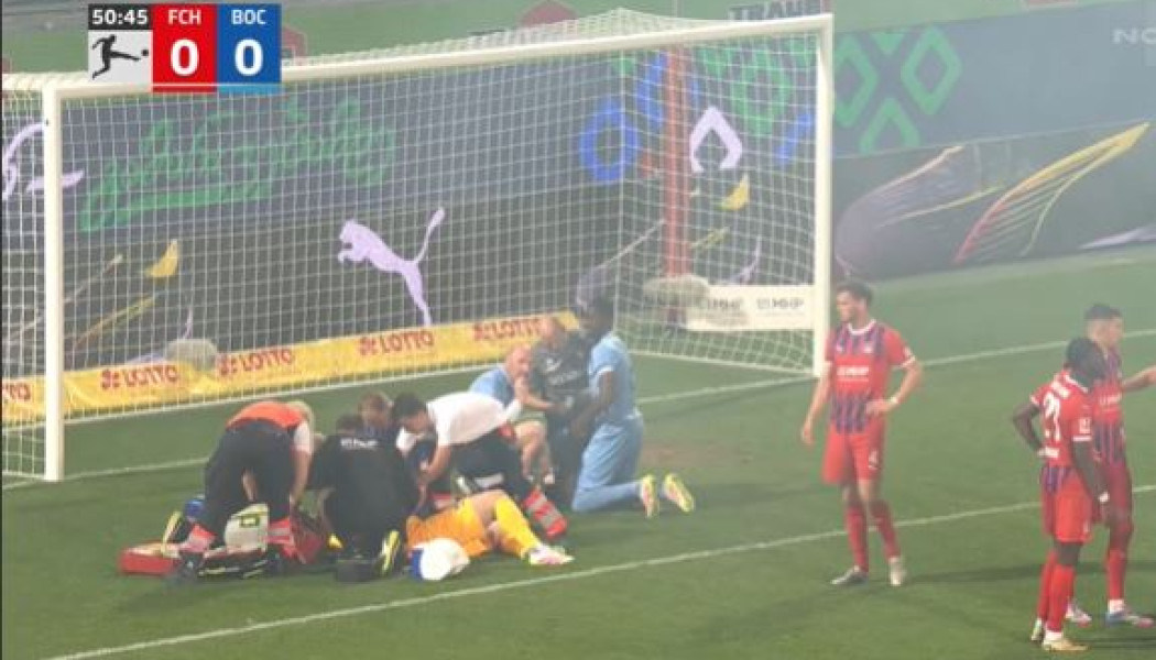 «Πάγωσαν» οι πάντες στη Γερμανία, μετά τη σφοδρή σύγκρουση του Μίλερ με τον Σισοκό, με τον τερματοφύλακα της Χάιντενχαϊμ να αποχωρεί με φορείο από το γήπεδο.