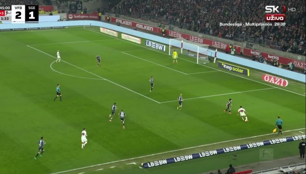 Με τη δέκατη φετινή της νίκη στην Βundesliga η Στουτγάρδη μπήκε για τα καλά σε τροχιά Champions League, επικρατώντας την Τρίτη (13/1) με 3-2 της Άιντραχτ Φρανκφούρτης.