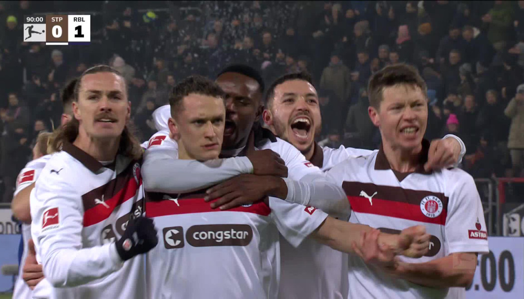 Χρυσό βαθμό στη μάχη που δίνει για την αποφυγή του υποβιβασμού απέσπασε στην έδρα της από τη Λειψία η Ζανκτ Πάουλι, χάρις στο πέναλτι του Κάαρς στο 90'+3. Το γκολ του 19χρονου Σενεγαλέζου επιθετικού, Γιαν Ντιομάντ, είχε βάλει μπροστά στο σκορ του «κόκκινους ταύρους», που έχασαν την ευκαιρία να βρεθούν στο +2 από τη Στουτγκάρδη, που όπως όλα δείχνουν θα είναι οι δύο ομάδες που με τη Χοφενχάιμ θα παλέψουν για την 3η και 4η θέση, που δίνουν τα δύο τελευταία εισιτήρια για το Champions League.