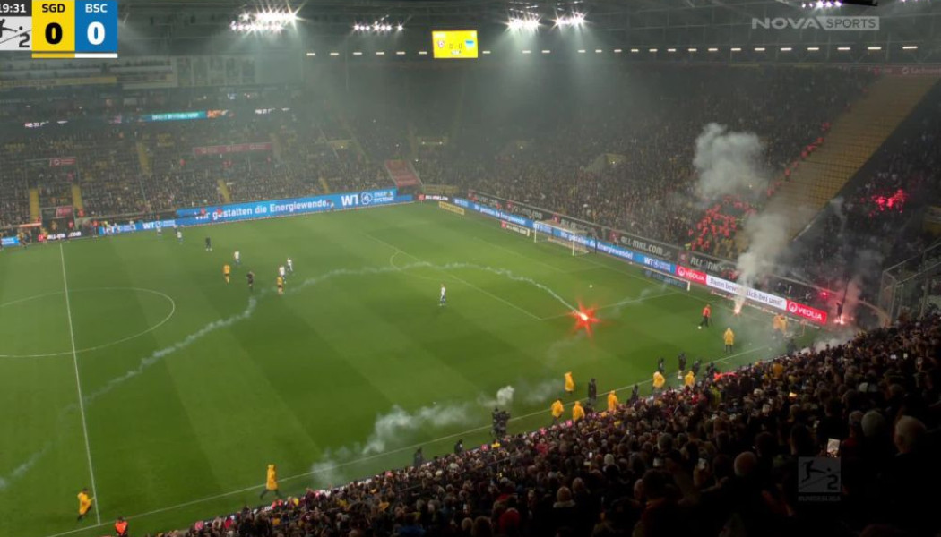 Το ντέρμπι ανάμεσα στη Ντιναμό Δρέσδης και τη Χέρτα Βερολίνου αμαυρώθηκε από εκτεταμένα επεισόδια, τα οποία ανάγκασαν τους διαιτητές να διακόψουν οριστικά την αναμέτρηση, μετατρέποντας ένα κατάμεστο γήπεδο σε πεδίο μάχης.
