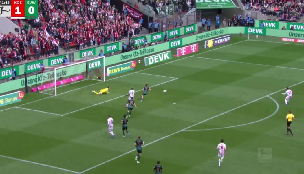 Οι φιλοξενούμενοι μείωσαν με το εύστοχο πέναλτι του Σμιντ στο 75’, για να «κλειδώσει» το τρίποντο της Κολωνίας ο Γιοχάνεσον στο έβδομο λεπτό των καθυστερήσεων, με την ομάδα της Βρέμης να έχει μπλέξει άσχημα, ούσα 15η με 28 πόντους.