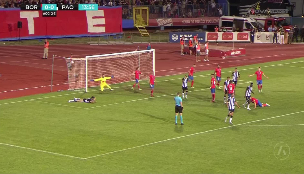 ΠΑΟΚ: Τεράστια ευκαιρία για τον Δικέφαλο του Βορρά να ανοίξει το σκορ στη Βοσνία, όταν στο 15' μετά από εκτέλεση κόρνερ του Ντεσπόντοφ, με πανέξυπνη κομπίνα, ο Κουλιεράκης βρέθηκε μόνος του στο δεύτερο δοκάρι και έκανε την προβολή, όμως η μπάλα σταμάτησε στη συμβολή των δοκαριών του Σισκόφσκι, με το 0-0 να παραμένει.