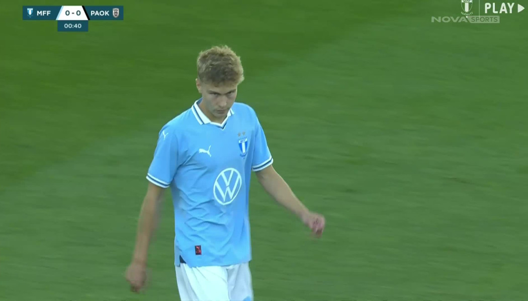 Η μπάλα κόντραρε και κατέληξε με εντυπωσιακό τρόπο στο δοκάρι του Κοτάρσκι, μόλις 10 δευτερόλεπτα μετά την έναρξη της αναμέτρησης Μάλμε - ΠΑΟΚ.