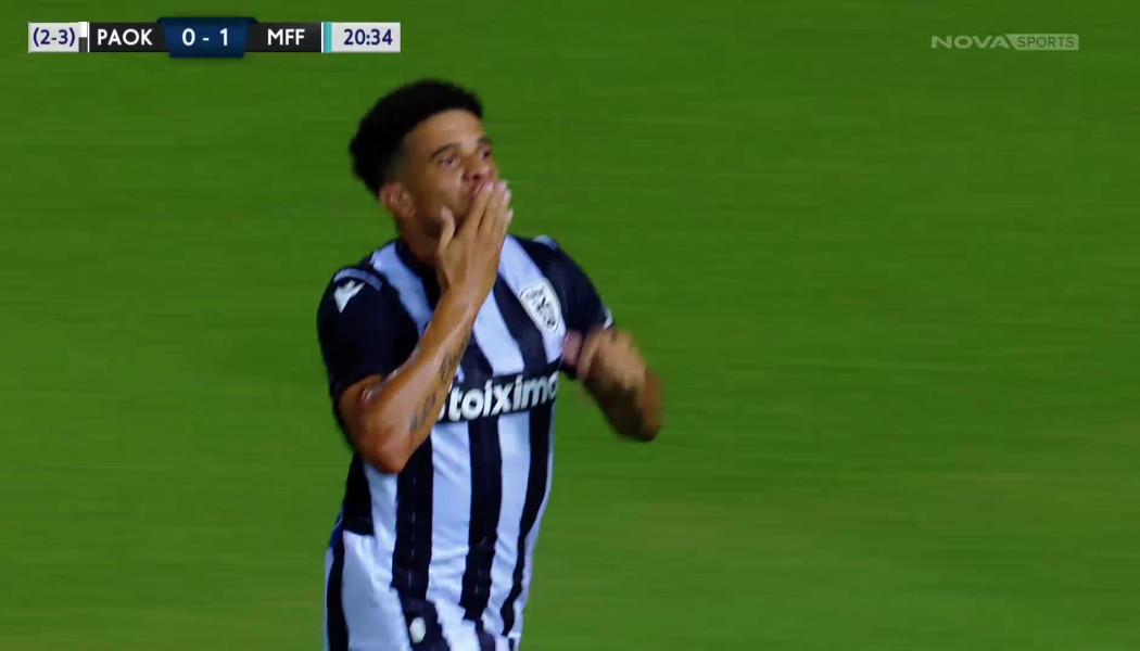 Άμεση η απάντηση του ΠΑΟΚ, με τον Βραζιλιάνο να ισοφαρίζει τη Μάλμε σε 1-1