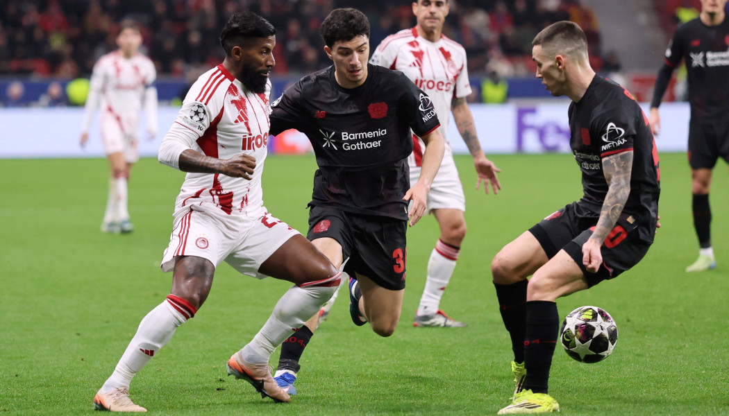 Ο Ολυμπιακός λίγο έλειψε να βρεθεί πίσω στο σκορ από τη Λεβερκούζεν στο 6', όταν οι Παναγιώτης Ρέτσος και Λορέντσο Πιρόλα έχασαν τον Πάτρικ Σικ στην πλάτη τους μετά από βαθιά μπαλιά. Λάθος έκανε και ο Κωνσταντής Τζολάκης με κακή έξοδο από τα δοκάρια, με τον Σικ να επιχειρεί να τον "κρεμάσει" με λόμπα αλλά να αστοχεί.