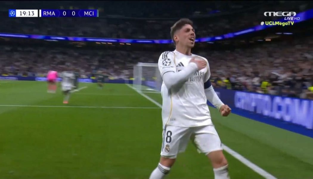 Ρεάλ Μαδρίτης - Μάντσεστερ Σίτι: Ο Φεντερίκο Βαλβέρδε έκλεψε την παράσταση στο πρώτο ημίχρονο του ματς στη Μαδρίτη, σκοράροντας τρεις φορές για τη Ρεάλ, στο 20', στο 27' και στο 42', με το τρίτο γκολ ειδικά να είναι... έργο τέχνης!