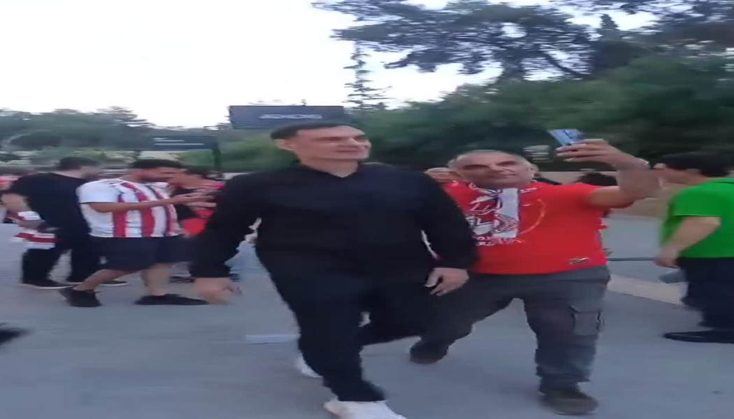 Εν μέσω αποθέωσης από φίλους του Ολυμπιακού, που του ζητούσαν selfies, έφτασε στην Νέα Φιλαδέλφεια για τον μεγάλο τελικό και ο Γιώργος Μπαρτζώκας.