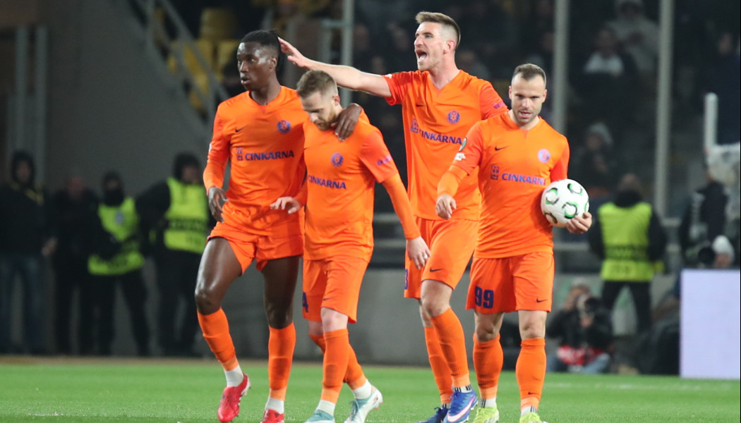Ο Ιοσίφοφ έκανε το 1-0 για την Τσέλιε κόντρα στην ΑΕΚ στο 13' και ο Πόζεγκ διπλασίασε τα τέρματα των Σλοβένων στο 42', σε μία φάση που η άμυνα των Κιτρινόμαυρων θύμισε... παιδική χαρά!