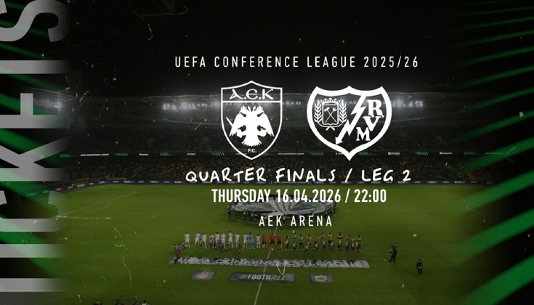 Όπως ανακοίνωσε η ΠΑΕ ΑΕΚ, ο εντός έδρας αγώνας με τη Ράγιο Βαγεκάνο για τη φάση των «8» θα διεξαχθεί την Πέμπτη 16 Απριλίου στις 22:00, με τους κατόχους διαρκείας να λαμβάνουν μέσα στην ημέρα προσωπικό e-mail από το Τμήμα Εισιτηρίων. Μέσω του ειδικού συνδέσμου που θα περιλαμβάνεται στο μήνυμα, θα μπορούν να ολοκληρώσουν την πληρωμή και να κατοχυρώσουν τη θέση τους για το κρίσιμο ευρωπαϊκό παιχνίδι.