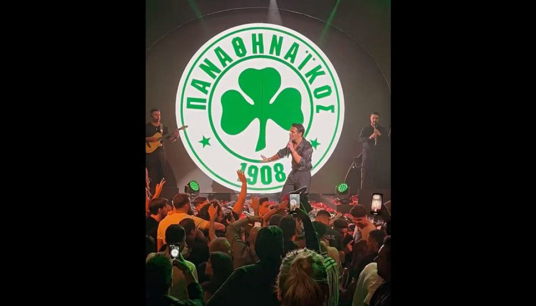 Ο γνωστός τραγουδιστής τους αφιέρωσε το "Σήκωσε το τηλέφωνο" με... διασκευή που το μετέτρεψε σε "Σήκωσε το τρόπαιο", με αποτέλεσμα να σκορπίσει ενθουσιασμό.