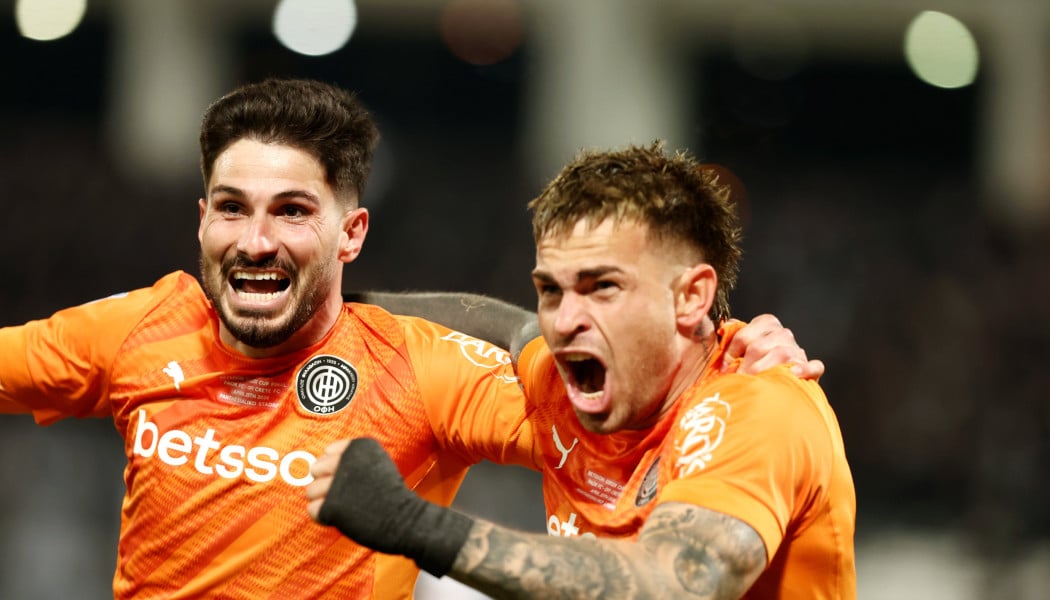 Ο ΟΦΗ ισοφάρισε τον ΠΑΟΚ με τον Φούντα στο 28΄ και γύρισε σε 2-1 τον τελικό του Κυπέλλου Ελλάδας χάρη σε γκολ του Τιάγκο Νους στο 49'.