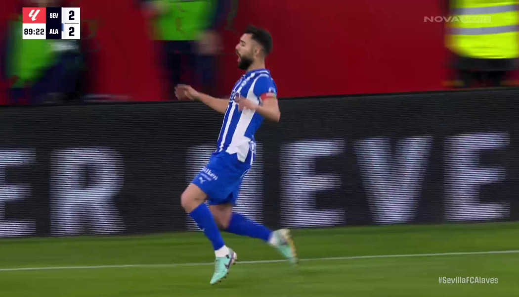 La Liga: Τεράστιο «διπλό» στο «Σάντσεθ Πιθχουάν» πέτυχε η Αλαβές επί της Σεβίλης με 3-2, σε παιχνίδι «θρίλερ» που κρίθηκε στο 90΄ με το γκολ του Ντουάρτε, έντεκα λεπτά μετά την είσοδό του στον αγωνιστικό χώρο.