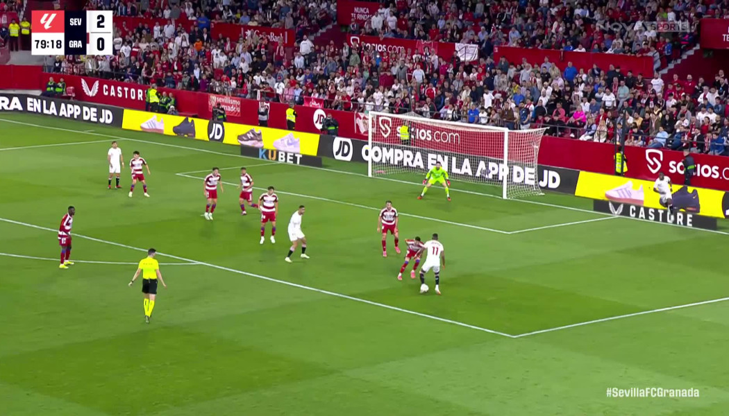 Ο επιθετικός της Σεβίλλης ζάλισε τους αμυντικούς της Γρανάδα και με υπέροχο πλασέ έστειλε τη μπάλα στα δίχτυα.