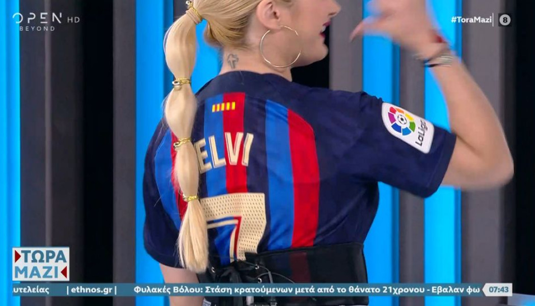 Μια έκπληξη επεφύλασσε στον Σπύρο Χαριτάτο και την Χρύσα Φώσκολου η αθλητικογράφος του OPEN, Έλβη Μιχαηλίδου, που μετά τη χθεσινή νίκη της Μπαρτσελόνα με 4-0 επί της Ρεάλ Μαδρίτης, εμφανίστηκε στον αέρα της εκπομπής "Τώρα Μαζί" με φανέλα των Μπλαουγκράνα!