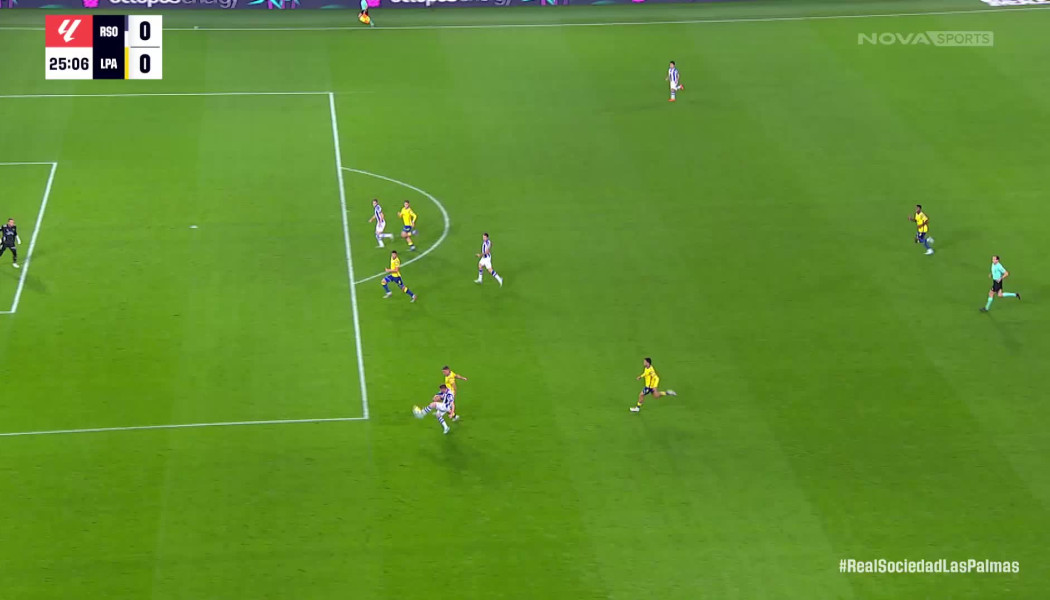 Στο 25΄, ο Μίκελ Ογιαρθάμπαλ από το ύψος του πέναλτι είχε όλη την άνεση να σκοράρει, αλλά σημάδεψε το δοκάρι της εστίας της Λας Πάλμας.