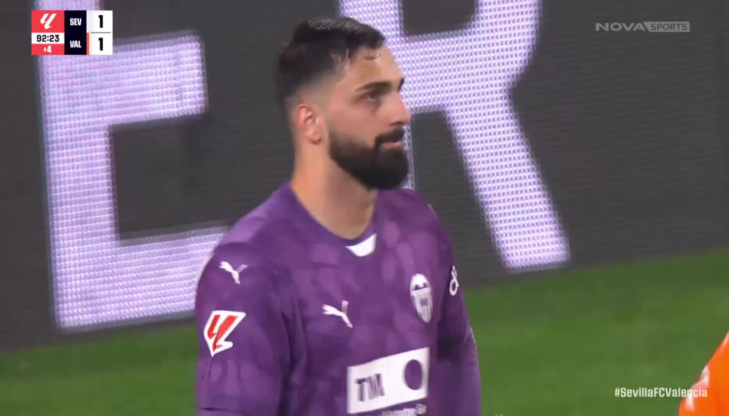Η Βάλενθια κρατούσε μέχρι το 90+3' τοτρίποντο, αλλά το λάθος του Μαμαρντασβίλι έφερε το τελικό 1-1! Ο Πεδρόσα δοκίμασε ένα σουτ από μακριά και ο Μαμαρντασβίλι έκανε τεράστιο λάθος με την μπάλα να βρίσκει στον καρπό του και να περνάει από πάνω του.