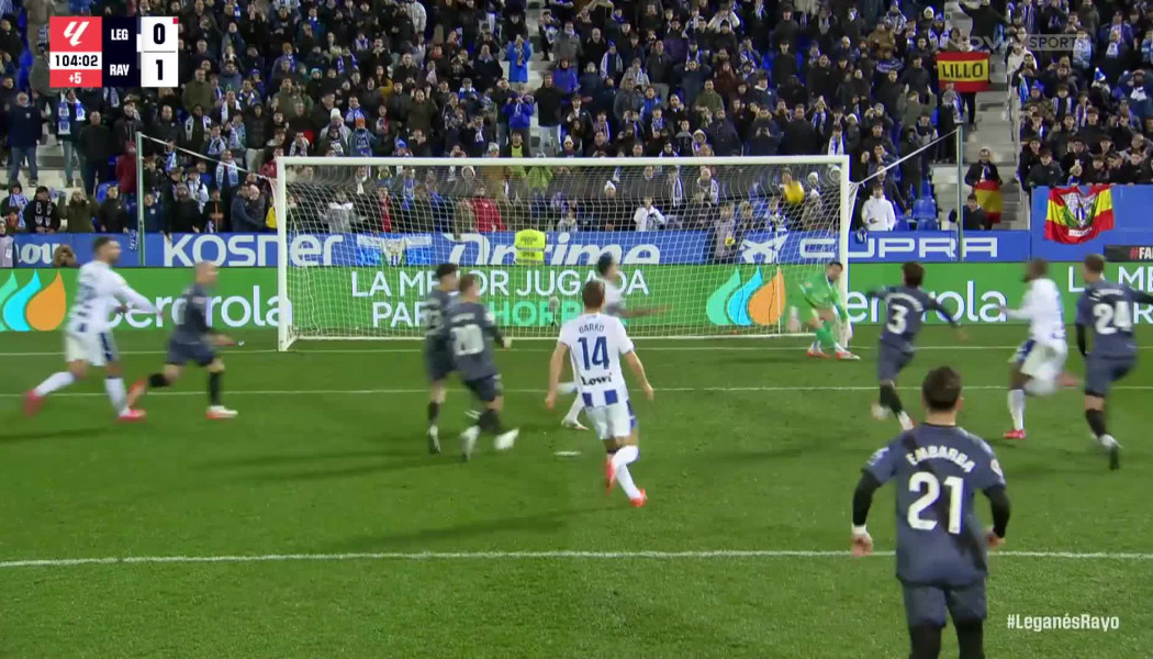 Στο έκτο λεπτό των καθυστερήσεων και μέσω VAR, ο διαιτητής έδειξε πέναλτι υπέρ της Λεγανές που έπαιζε με δέκα παίκτες και το εκτέλεσε ο Μιγκέλ Γκουτιέρεθ, όμως, ο τερματοφύλακας Αουγκούστο Μπατάλια το απέκρουσε, αλλά στην επαναφορά ο Μιγκέλ πήρε την κεφαλιά, η μπάλα κατέληξε στον επερχόμενο Βαλεντέν Ροζιέ, ο οποίος ισοφάρισε με το γόνατο.