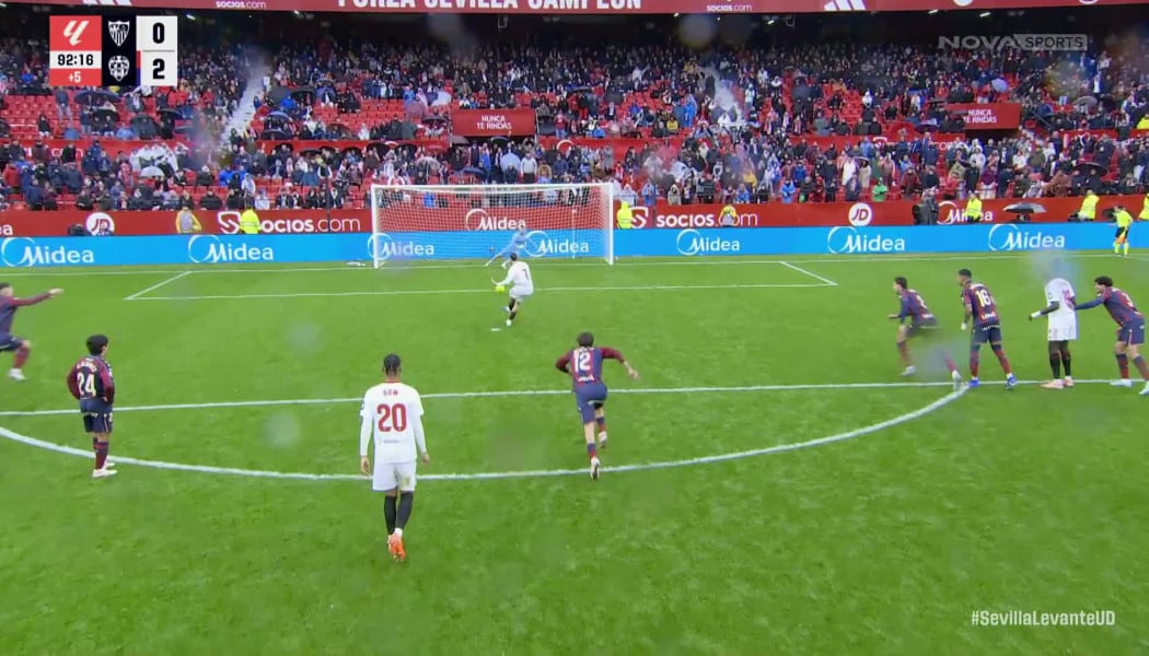 Η Σεβίλλη είχε τη μεγάλη ευκαιρία να ξαναμπεί στο παιχνίδι στις καθυστερήσεις, ωστόσο στο 90’+2’ ο Ρομέρο αστόχησε σε πέναλτι με τον Μάθιου Ράιαν να λέει όχι στον Ίσαακ Ρομέρο δύο φορές!