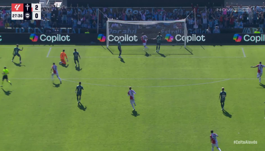 Στα πρώτα 37 λεπτά, η Θέλτα κυριάρχησε πλήρως, σκοράροντας τρεις φορές δείχνοντας ανίκητη, με τον Τζούτγκλα να πρωταγωνιστεί και να βρίσκει δίχτυα με εξαιρετικές προσπάθειες στο 19′ και το 37′, ενώ προηγήθηκε και ασίστ του στον Ούγκο Άλβαρεζ που έκανε το 2-0 στο 27′.