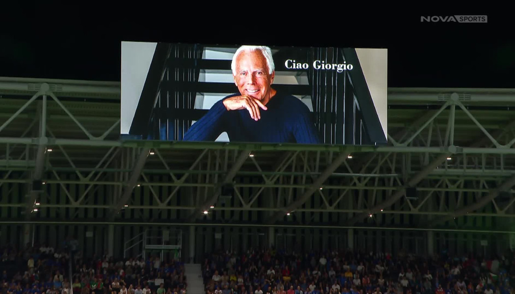 Σε μια συγκινητική στιγμή πριν από τη σέντρα του αγώνα Ιταλία – Εσθονία στο Μπέργκαμο, η Ιταλική Ποδοσφαιρική Ομοσπονδία (FIGC) απέτισε φόρο τιμής στη μνήμη του σπουδαίου Τζιόρτζιο Αρμάνι.