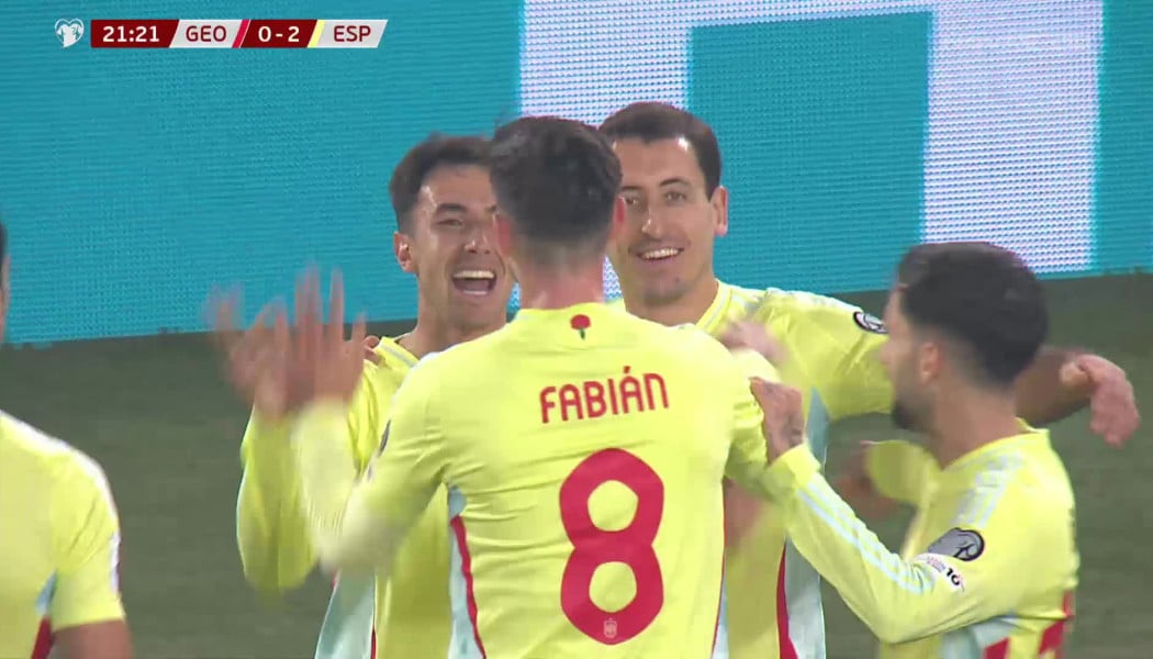 Δίνοντας μια ασίστ στην εμφατική εκτός έδρας νίκη της εθνικής Ισπανίας με 4-0 επί της Γεωργίας στην προτελευταία αγωνιστική των προκριματικών του Παγκοσμίου Κυπέλλου 2026, ο Φαμπιάν Ρουίθ εντυπωσίασε για άλλη μια φορά με την «ρόχα», φθάνοντας τις 40 συμμετοχές με το αντιπροσωπευτικό συγκρότημα της χώρας του.