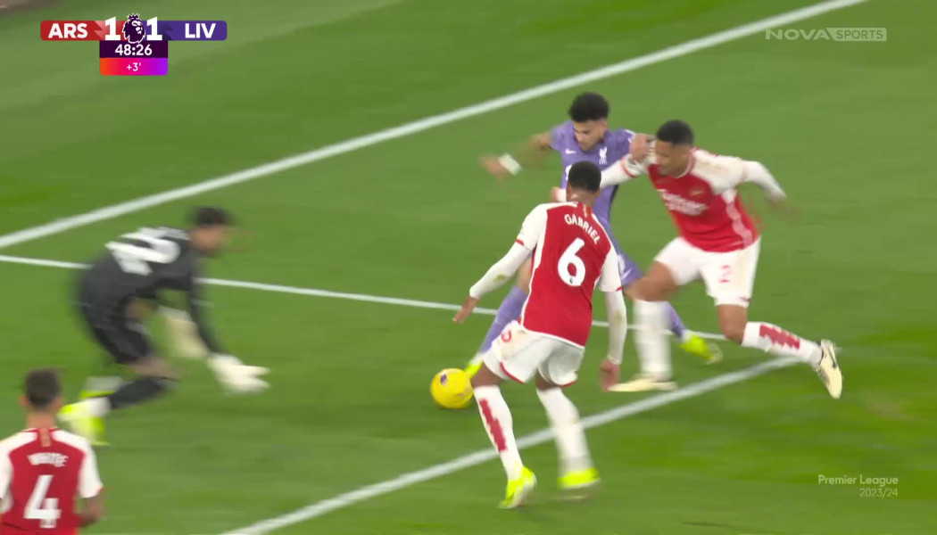 Άρσεναλ - Λίβερπουλ: Φοβερή εξέλιξη στον αγώνα, καθώς στο 45+3' οι φιλοξενούμενοι ισοφάρισαν σε 1-1 μετά από απίθανο αυτογκόλ του Γκάμπριελ! Ο Βραζιλιάνος άσος έστειλε την μπάλα στα δίχτυα της ομάδας του, ύστερα από τραγική κάλυψη του Σαλιμπά.